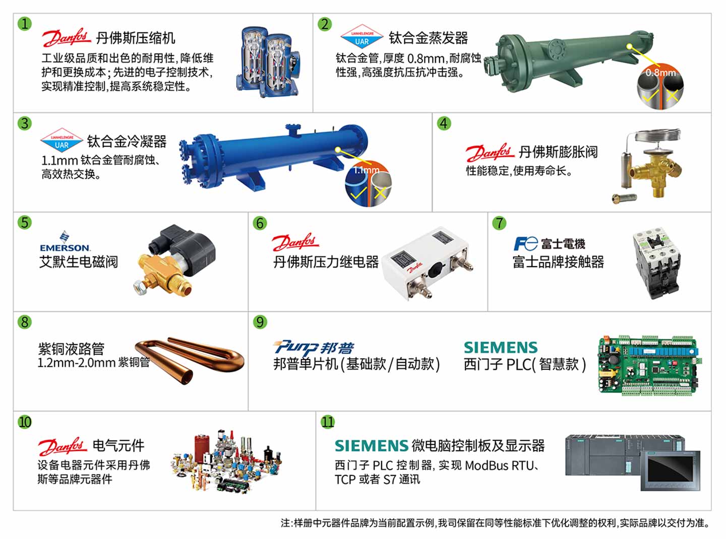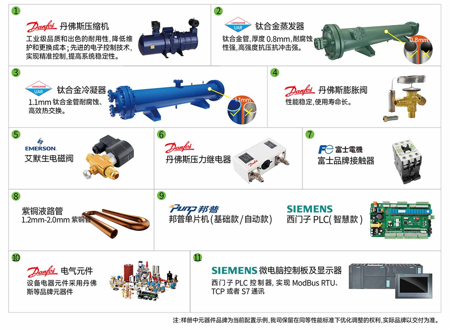 污水源热泵机组(涡旋式)主要配件品牌及参数