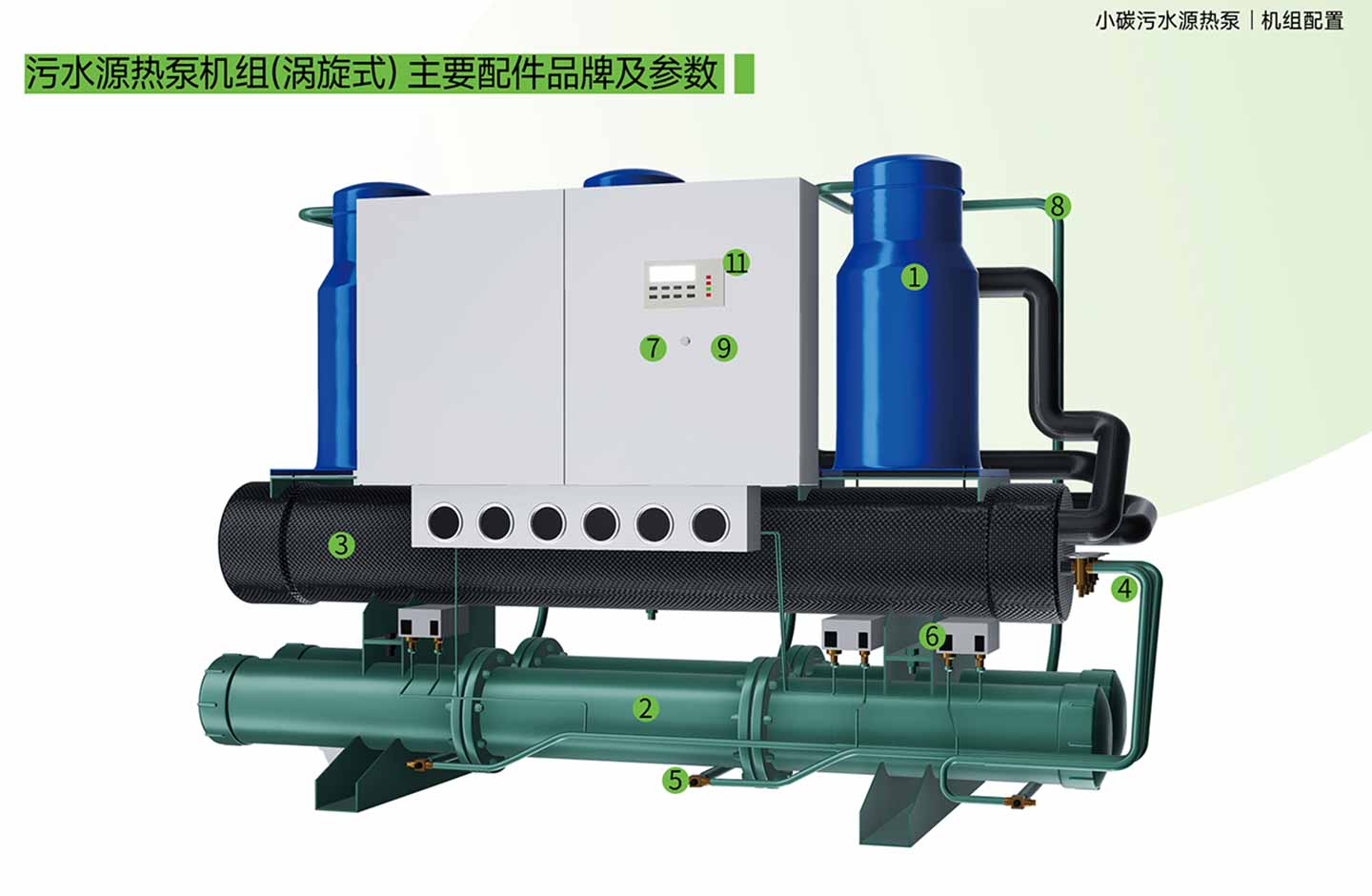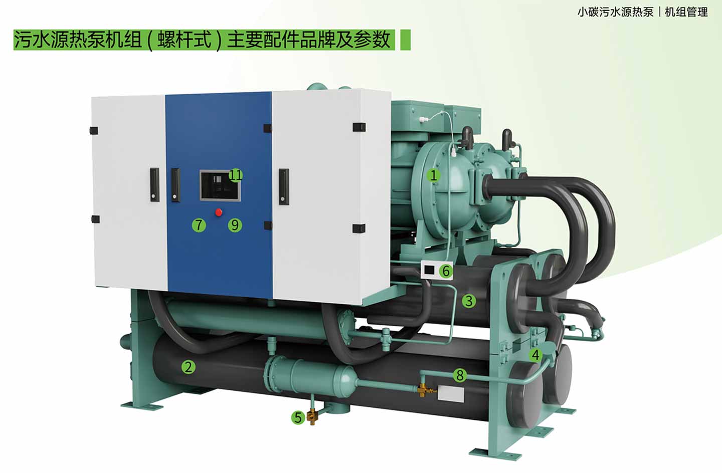 污水源热泵机组(螺杆式)主要配件品牌及参数