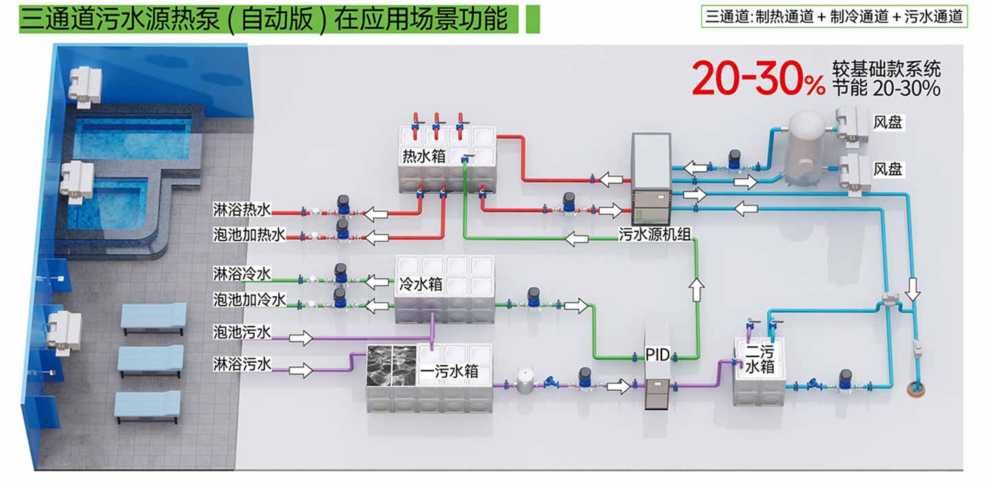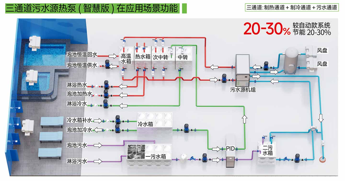 三通道污水源热泵(自动版)在应用场景功能