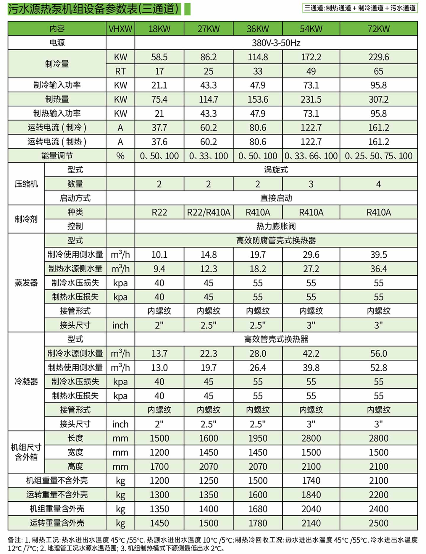 三通道污水源热泵设备参数表