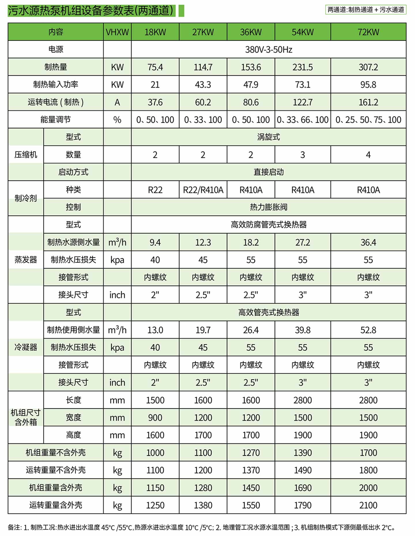 两通道污水源热泵设备参数表
