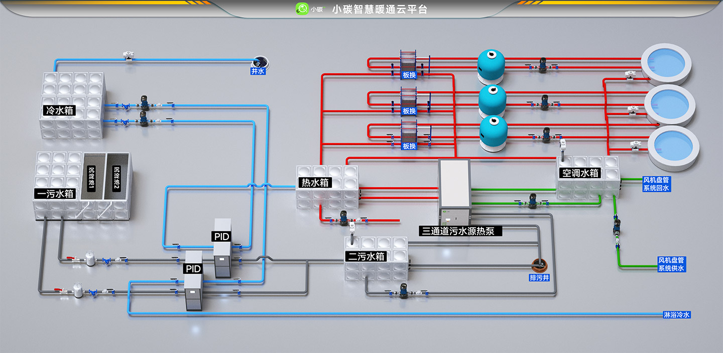解决方案:三通道污水源+污水热回收+智慧控制